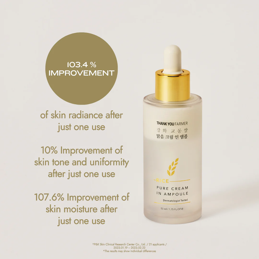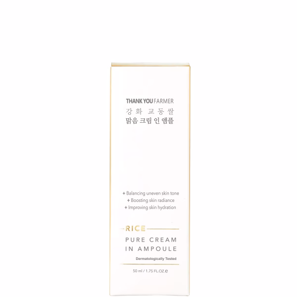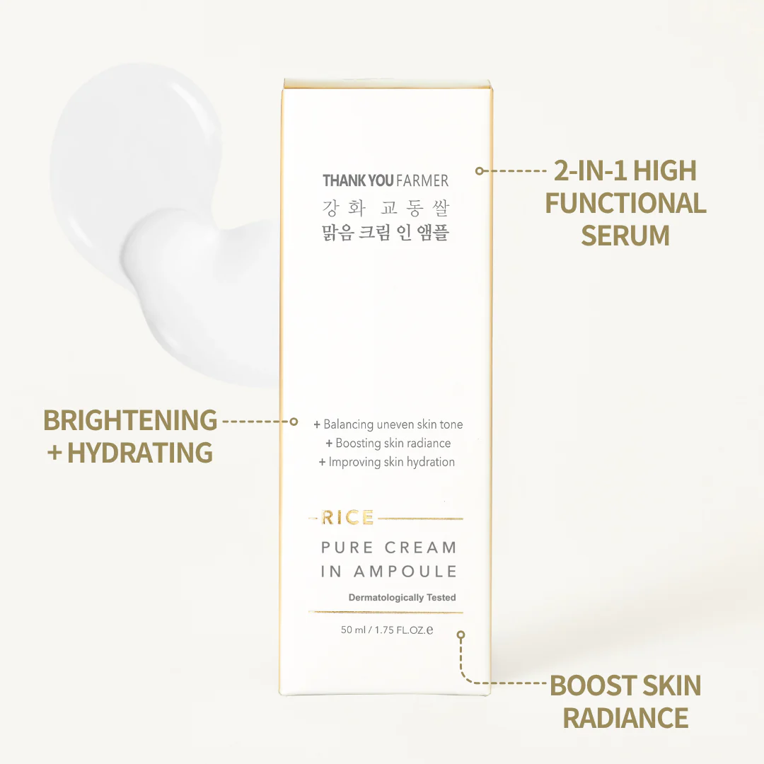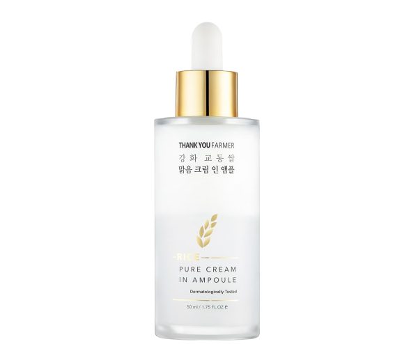 Двуфазен изсветляващ серум за лице, Rice Pure Cream in Ampoule 2 в 1, с ориз, пробиотици и хиалуронова киселина, 50 мл, Thank You Farmer