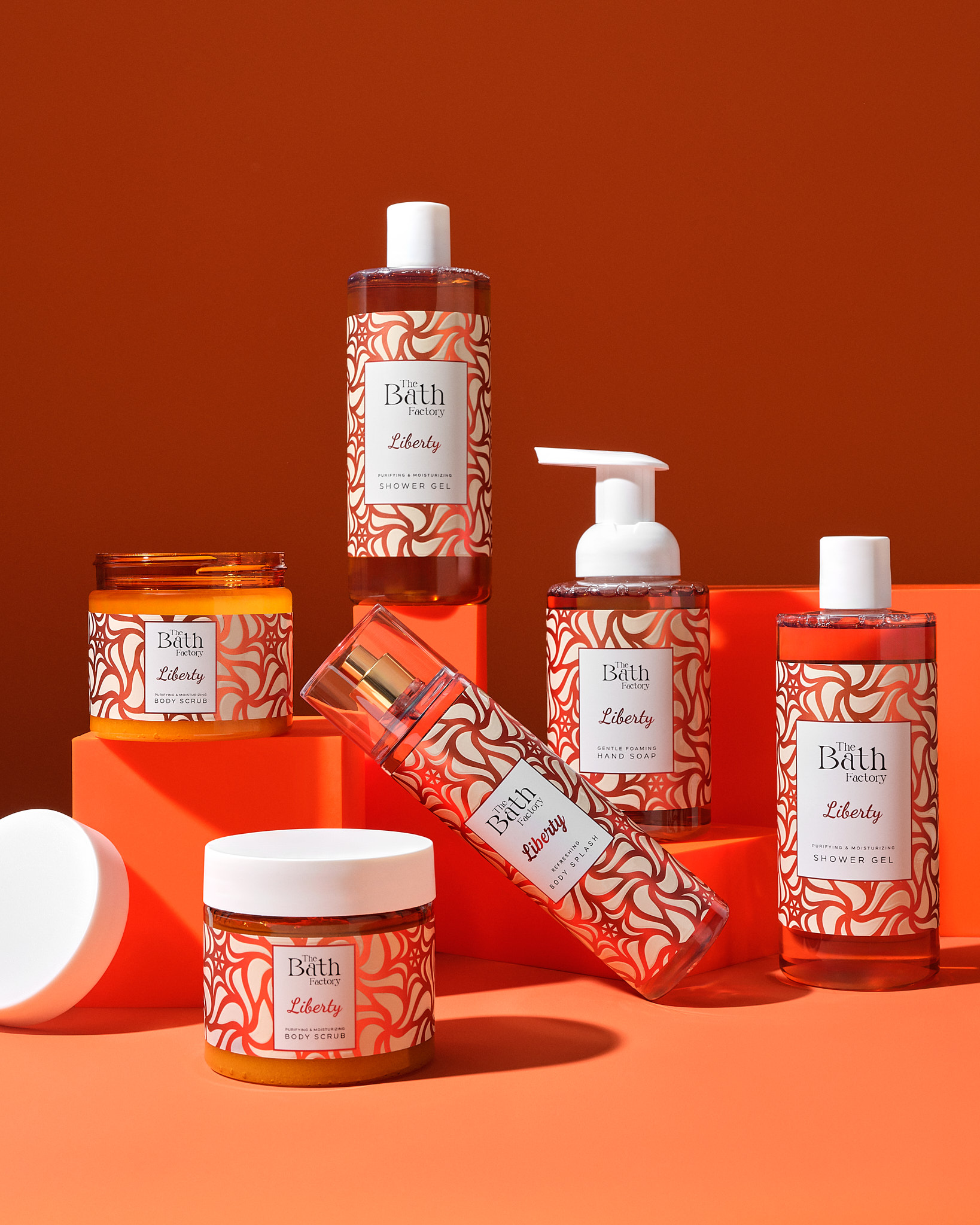 Подаръчна кутия Liberty (лосион, скраб, душ гел, течен сапун, спрей за тяло), The Bath Factory
