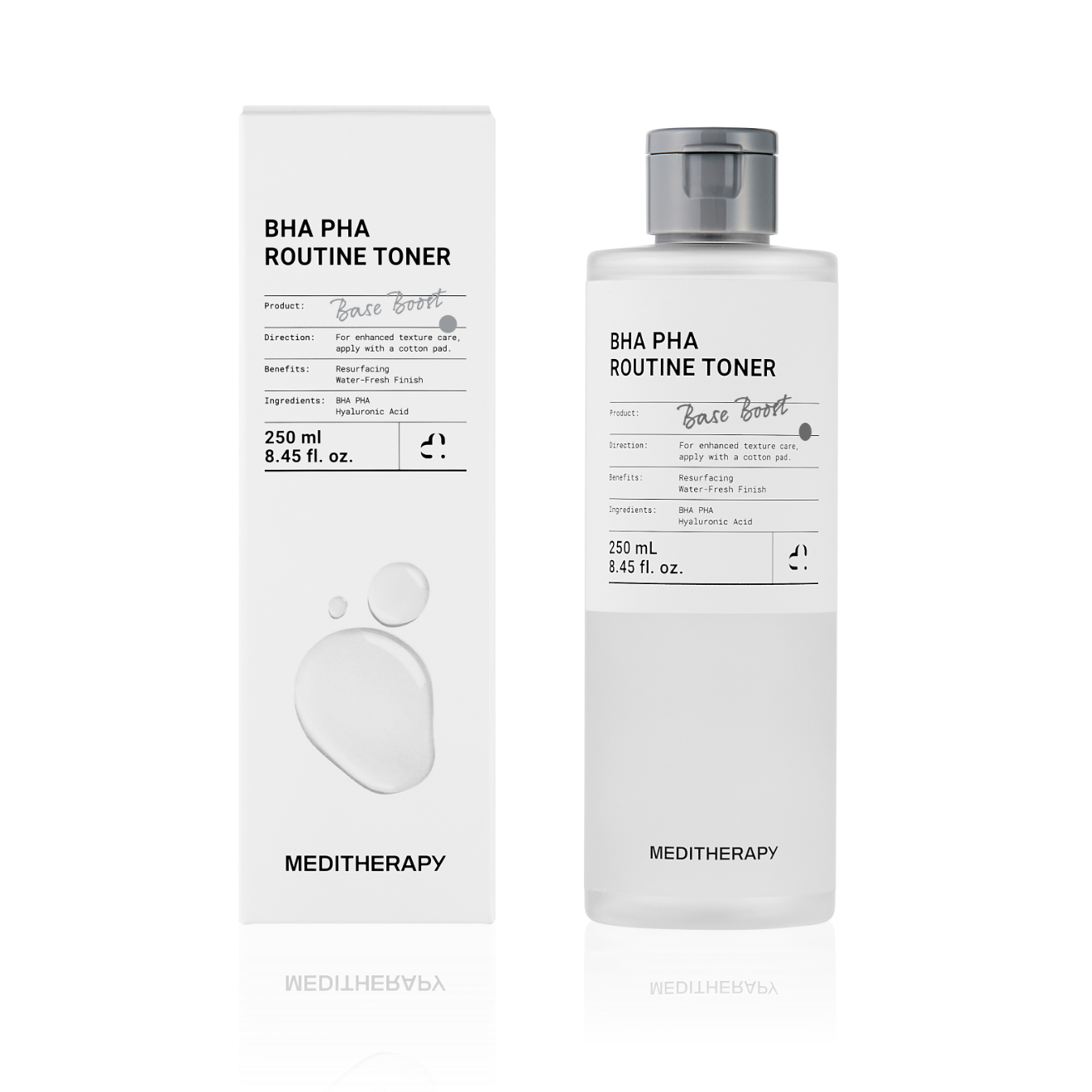 MEDITHERAPY BHA PHA Routine Тонер, есенциално решение за грижа за кожата, създадено да трансформира текстурата на кожата, да почиства порите и да оптимизира абсорбцията на последващи продукти, както на лицето, така и на тялото. Този иновативен тоник без аромат предлага нежна, но ефективна химическа ексфолиация, като същевременно хидратира и укрепва кожната бариера.